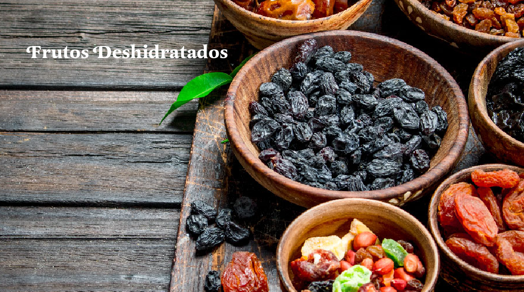 Variedades: Uva pasa / Ciruela pasa / Dátil / Coco / Albaricoque / Arándano